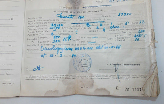 1971 DUCATI 160 MONZA OWNERSHIP CERTIFICATE BOOK ORIGINAL ITALIAN DOCUMENT
