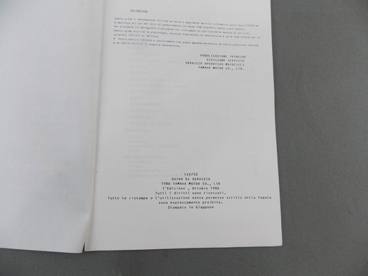 YAMAHA 1987 FZX750 SERVICE GUIDE MANUAL BOOK IN ITALIAN # 90894-86300