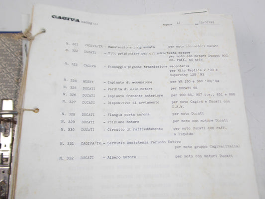 1980's DEALER BINDER FACTORY TECH ASSISTANCE BULLETIN CAGIIVA DUCATI HUSQVARNA