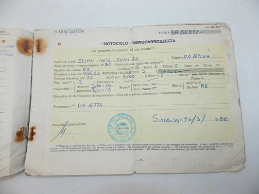 1980 MOTO GUZZI 350 ITALIAN OWNER CERTIFICATE CARTA CIRCOLAZIONE MOTORCYCLE