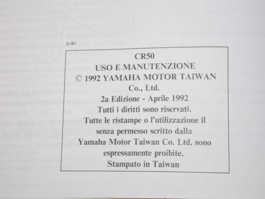 NEW 1992 MBK CR50 OWNER MANUAL BOOK IN ITALIAN YAMAHA SCOOTER MOTOBECANE