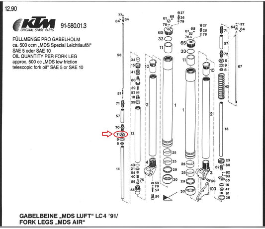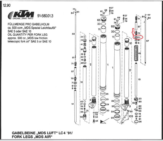 OEM KTM 90-91 500/600 LC4 MX D-XC E-XC FRONT FORK VALVE STR. LIMITER 58001547000