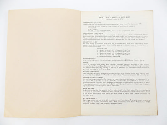 1975 NORTON-TRIUMPH AJS SUGGESTED RETAIL SPARE PARTS PRICE LIST BOOK AA111/75